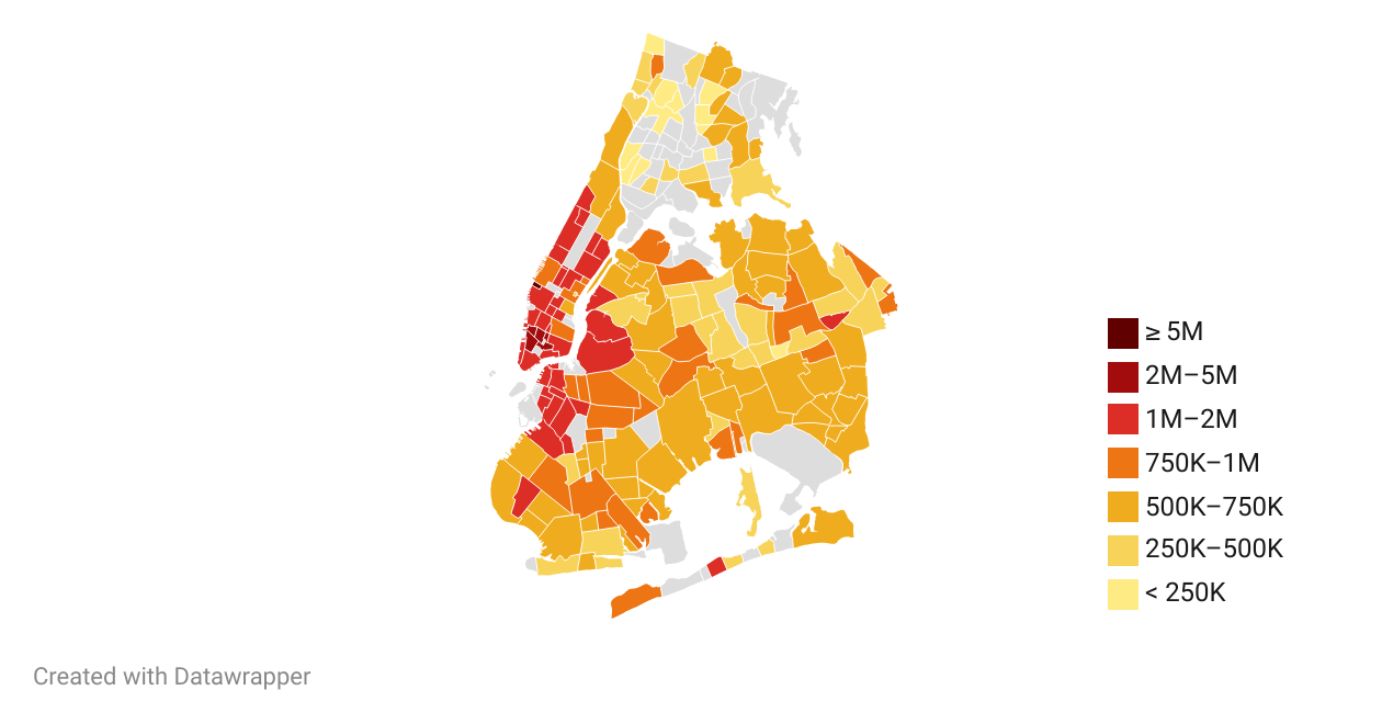 Property Shark has a great map showing house prices in all NYC neighborhoods: